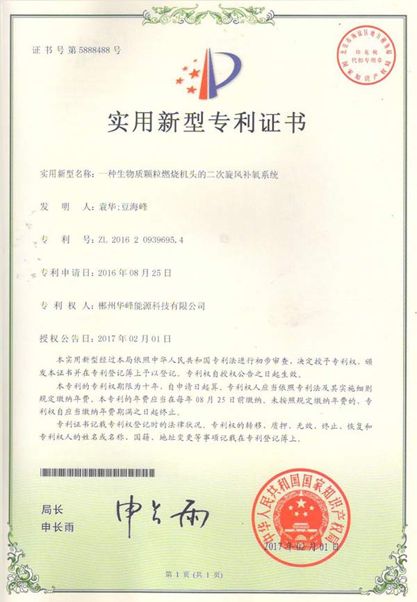一種生物質(zhì)顆粒燃燒機(jī)頭的二次旋風(fēng)補(bǔ)氧